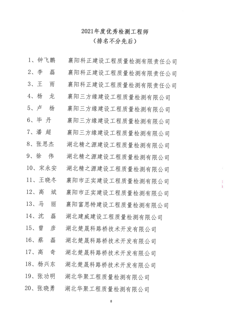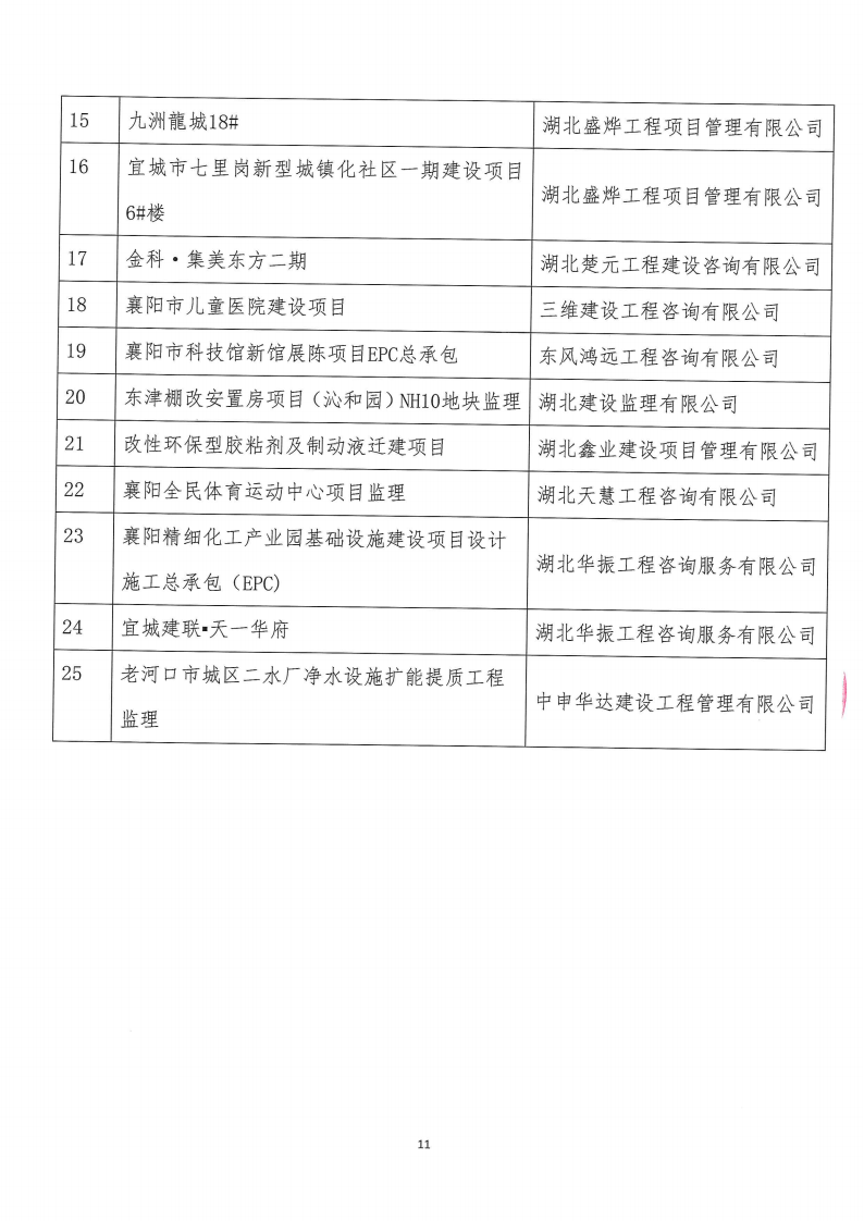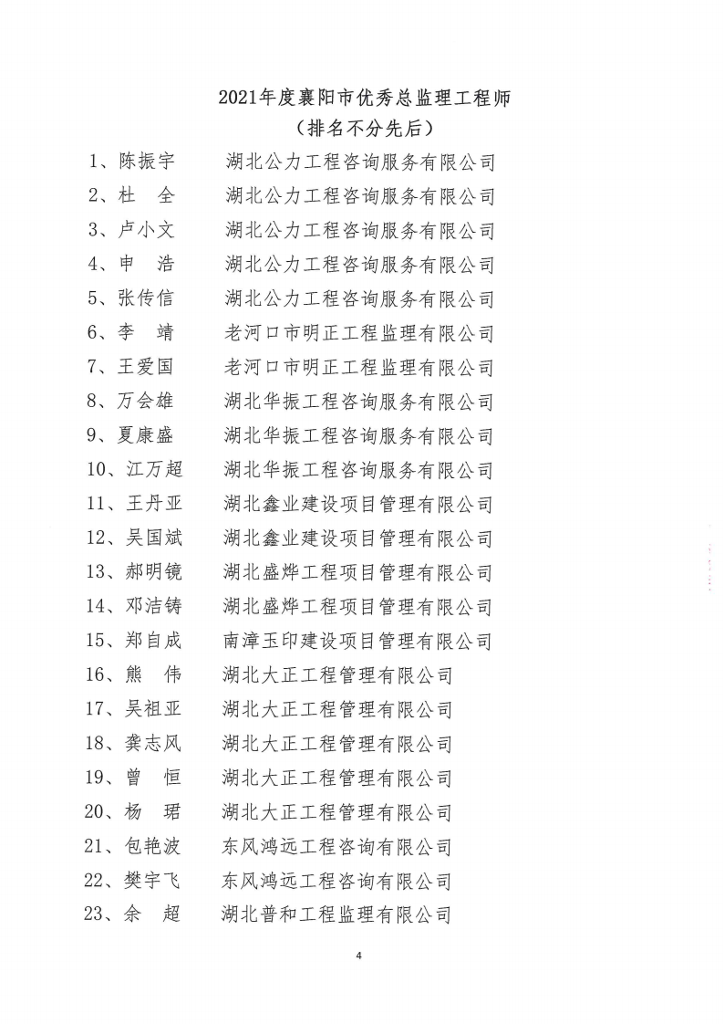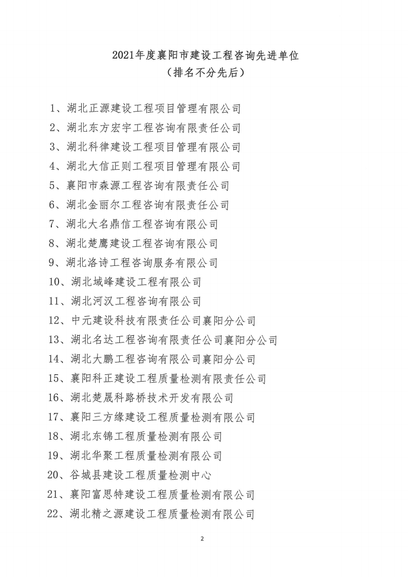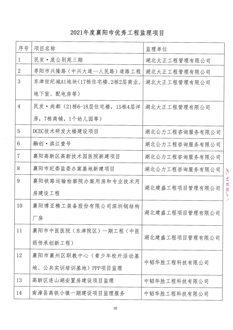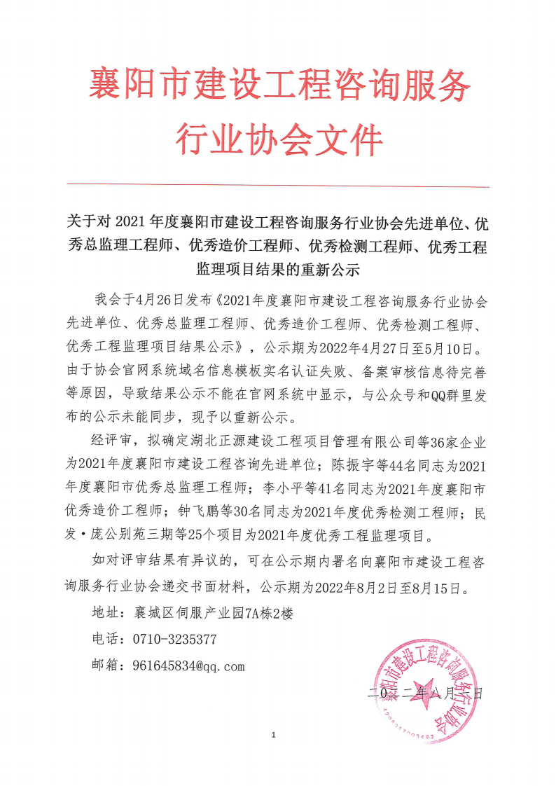 關于對2021 年度襄陽市建設工程咨詢服務行業協會先進單位、優 秀總監理工程師、優秀造價工程師、優秀檢測工程師、優秀工程 監理項目結果的重新公示