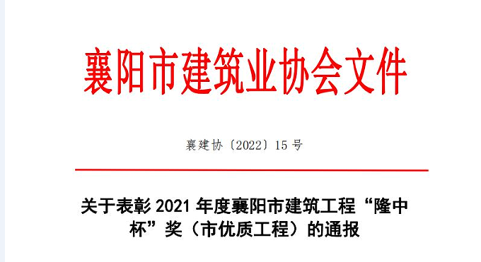 關(guān)于表彰2019年度襄陽(yáng)市建設(shè)工程“隆中杯”獎(jiǎng)(市結(jié)構(gòu)優(yōu)質(zhì)工程)的通報(bào)
