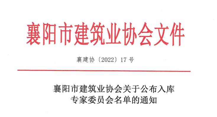 附件 襄建協(xié)〔2022〕17號(hào)襄陽(yáng)市建筑業(yè)協(xié)會(huì)關(guān)于公布入庫(kù)專家委員會(huì)名單的通知(1).pdf 【查看全文】